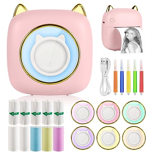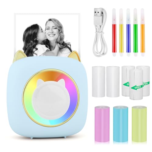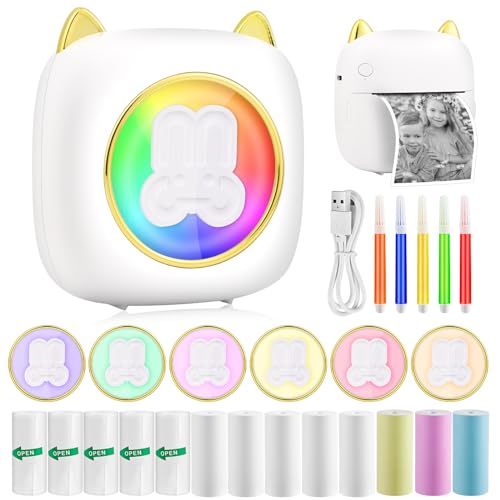 GuKKK Mini fotoskrivare, mobil termisk skrivare, trådlös Bluetooth-skrivare för smartphone, med 13 rullar skrivarpapper och 5 färgpennor, bärbar för lista, dagbok