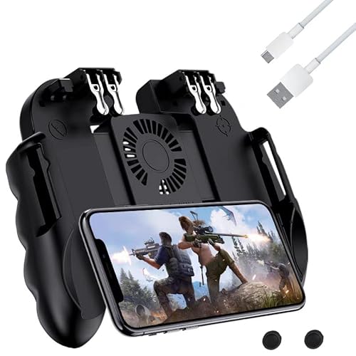 Goglor Mobile Game Controller For PUBG, [6 Finger/Upgrade Version Android & Iphone L1R1 Aim And Shoot Triggers Joystick Gamepad With Cooling Fan For Battle Royale/Knives Out(include 2 Finger Sleeve)
