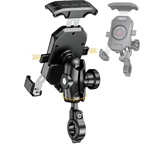 iMESTOU Vattentät IP67 motorcykel boll telefon montering cykel mobilhållare med säkert knopp lås dubbla uttag armar aluminium bas passar till styret/backspegel stång för 3,5-6,1 tum mobiltelefoner (S)