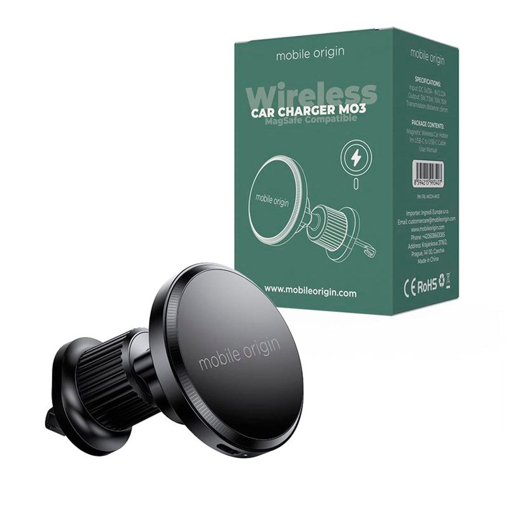 Mobile Origin MO3 Trådlös Mobilladdare för Bil - 15W - MagSafe Kompatibel - Svart