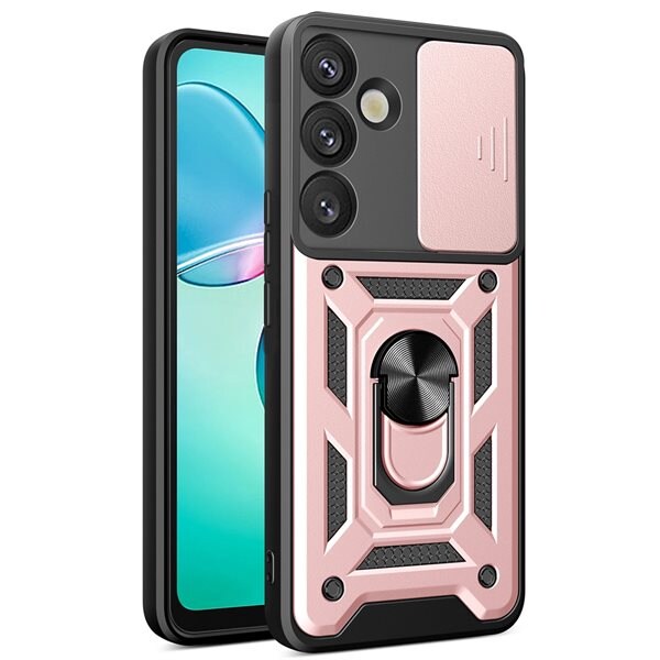 Hybrid Armor Camshield skyddsskal med kameraskydd och mobilring till Samsung Galaxy S25+ – Rosa