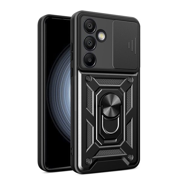 Hybrid Armor Camshield Skal med mobilring och kameraskydd till Samsung Galaxy A36 - Svart