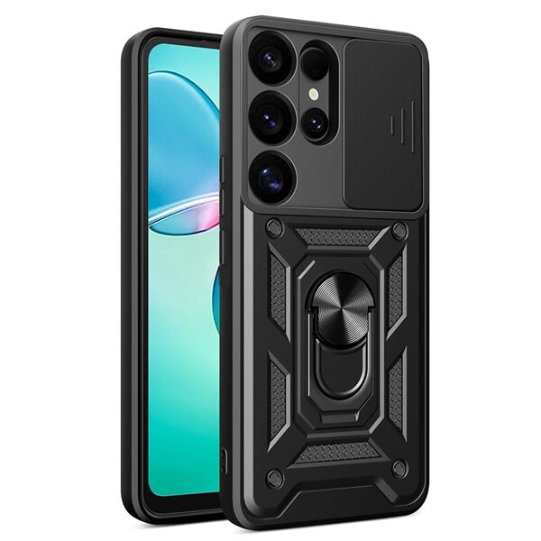 Bakskal med kameraskydd och mobilring till Samsung Galaxy S25 Ultra - Svart