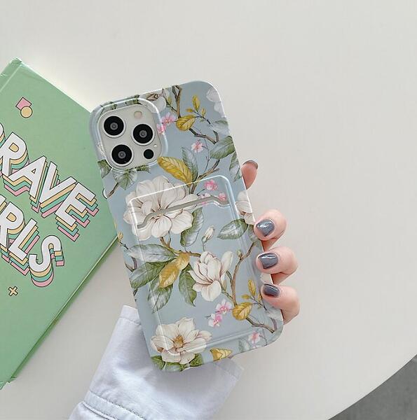 Flowers iPhone 13 Skal med Kortfack Grön