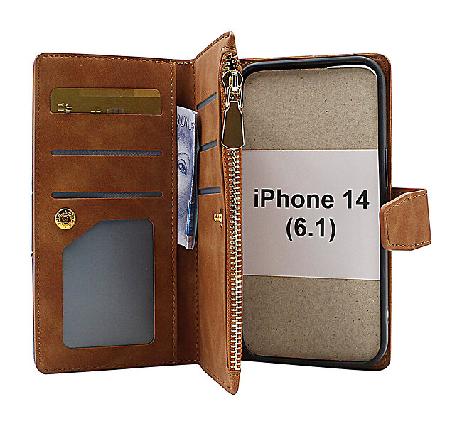 billigamobilskydd.se XL Standcase Lyxfodral iPhone 14 (6,1) (Brun) 44991