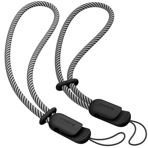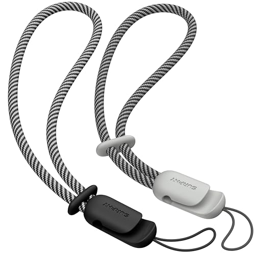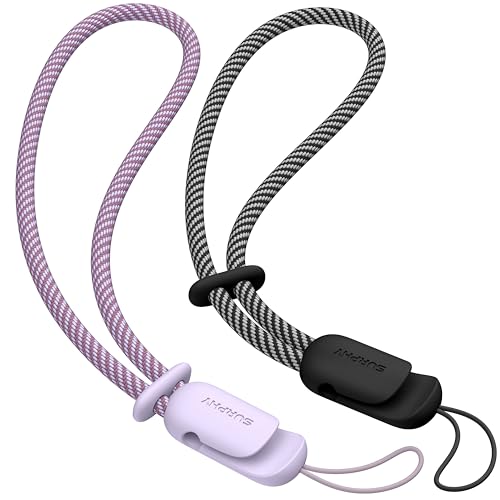 SURPHY Mobilsnöre, stöldsäkert, mobilhandledssnöre, mobilberlock, flätat i 2 färger, handledsrem för mobil, för kvinnor och män, svart och grått, 2-pack