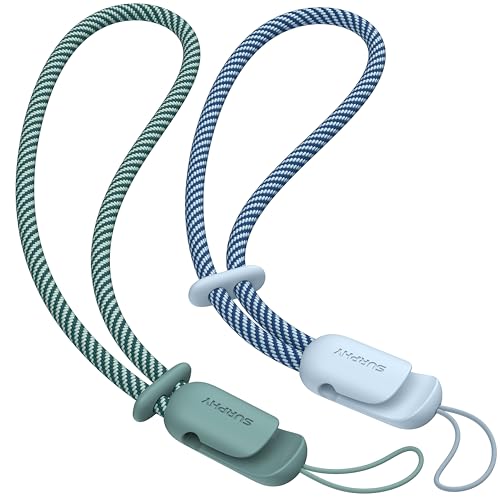 SURPHY Mobilsnöre, stöldsäkert, mobilhandledssnöre, mobilberlock, flätat i 2 färger, handledsrem för mobil, för kvinnor och män, molnblått och grönt, 2-pack