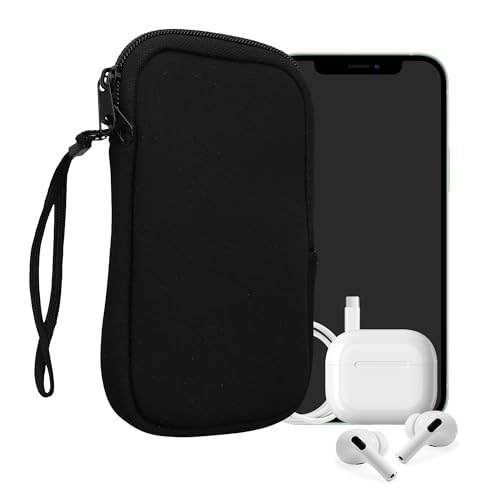 kwmobile Telefonväska i neopren, storlek L – 6,5 tum – universell mobiltelefonväska med dragkedja, handledsrem – svart