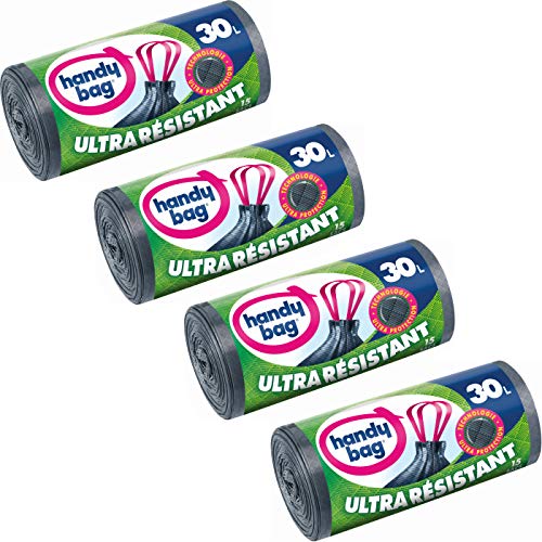 Mobiltelefonväska 4 rullar med 15 soppåsar 30 l, skjuthandtag, ultraslitstarka, läckagesäker, 53 x 63 cm, mörkgrå, ogenomskinlig