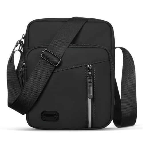 Aucuu axelväska axelväska herr, vattentät herrväska för upphängning messengerväska med multiväska, mobilväska, crossbody bag för vardagen, affärsarbete och resor, Svart-a, M
