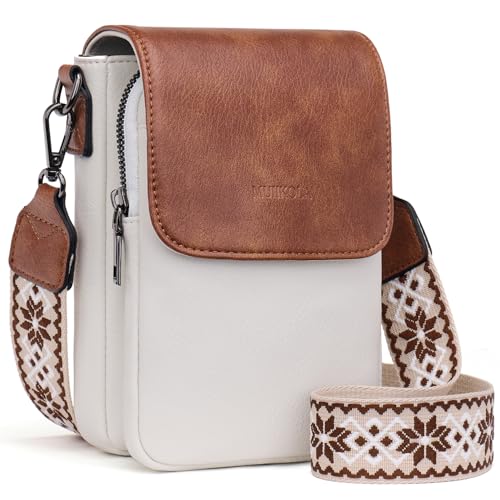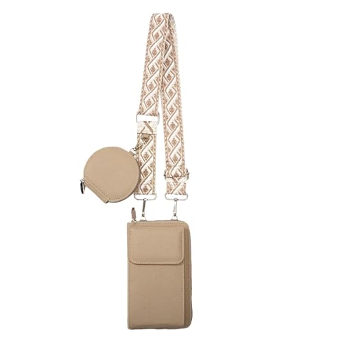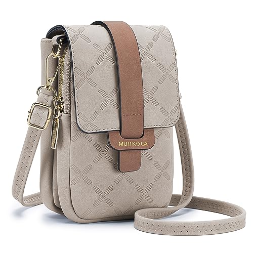 MUIIKOLA Mobiltelefonväska för upphängning, RFID-blockering stor kapacitet mobiltelefon axelväska dam läder, mobilväska med plånbok för upphängning, axelväska dam bred rem avtagbar axelrem, Z-beige