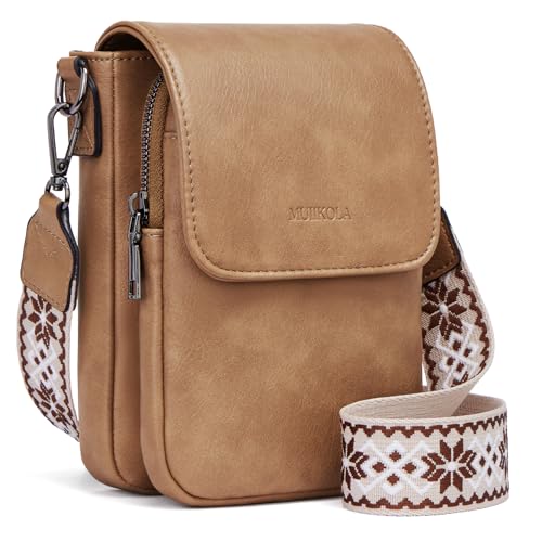 MUIIKOLA Mobiltelefonväska för upphängning, RFID-blockering stor kapacitet mobiltelefon axelväska dam läder, mobilväska med plånbok för upphängning, axelväska dam bred rem avtagbar axelrem,