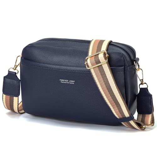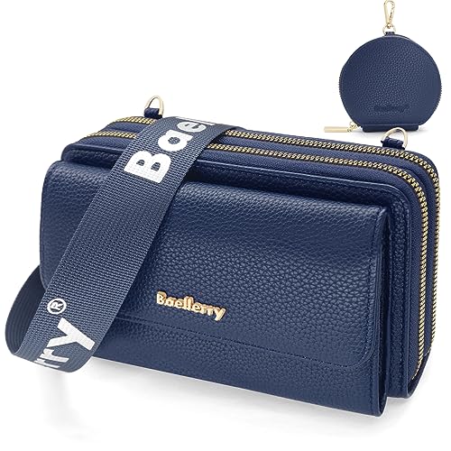AIFILLE Mobiltelefon-axelväska för damer, PU-läder, crossbody-väska, damer, mobilväska för upphängning, axelväska, damer, liten, moderna väskor med bred avtagbar axelrem och 2 fack med dragkedja, blå