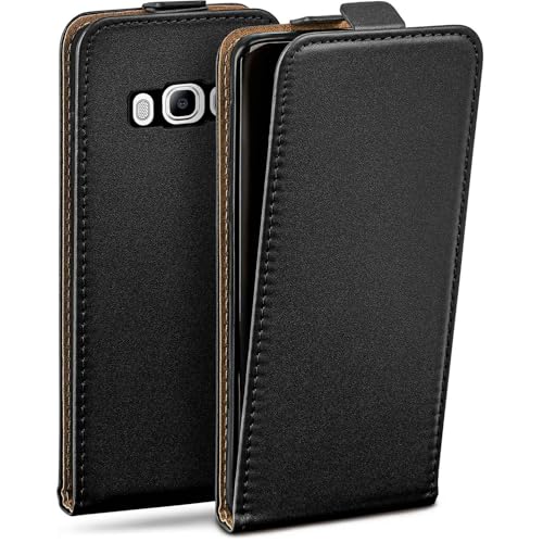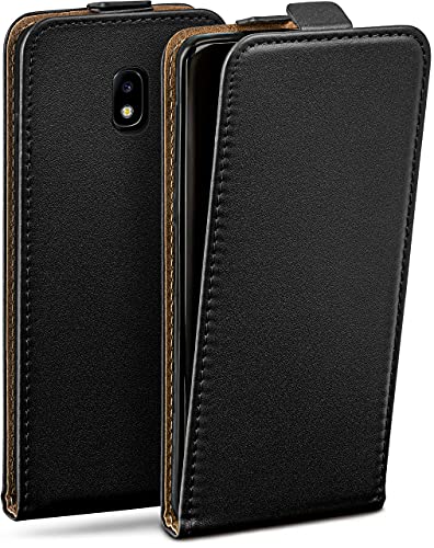 moex Flip Case för Samsung Galaxy J3 (2017), vikbart, 360 graders runt komplett skydd, vikbart fodral av veganskt läder, mobilväska med vertikal klaff, magnetisk – svart