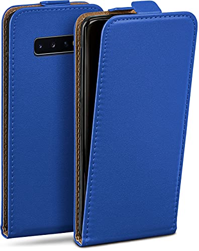 moex Flip Case för Samsung Galaxy S10 Plus vikbart fodral, 360 grader runt komplett skydd, vikbart fodral av veganskt läder, mobilväska med vertikal klaff, magnetisk – mörkblå