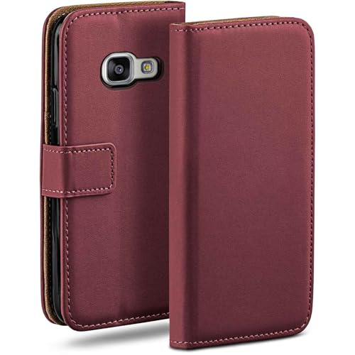 moex Vikbart fodral kompatibelt med Samsung Galaxy A5 (2016) hopfällbart fodral, mobiltelefonfodral med kortfack, 360 graders flipfodral, veganskt läder mobilväska, vinröd