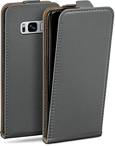 moex Flip Case för Samsung Galaxy S8, vikbart, 360 graders komplett skydd, vikbart fodral av veganskt läder, mobilväska med vertikal klaff, magnetisk – grå
