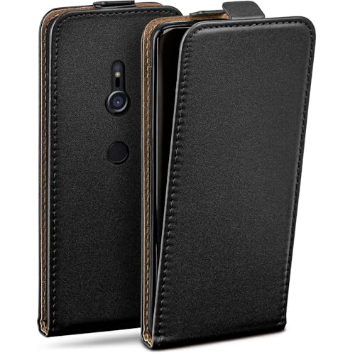 moex Flip Case för Sony Xperia XZ3, vikbart, 360 graders runt komplett skydd, vikbart fodral av veganskt läder, mobilväska med vertikal klaff, magnetiskt – svart