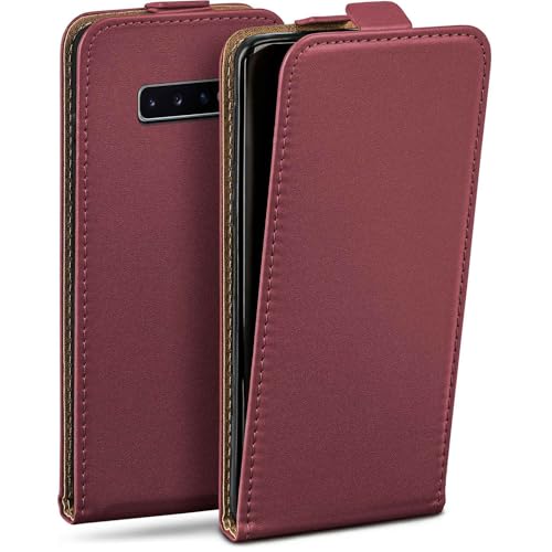 moex Flip Case för Samsung Galaxy S10, vikbart fodral 360 graders runt komplett skydd, vikbart fodral av veganskt läder, mobilväska med vertikal klaff, magnetisk – vinröd