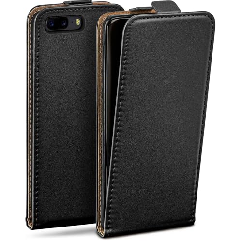 moex Flip Case för OnePlus 5 fodral vikbart med 360 graders skydd, mobiltelefonfodral med displayskydd, PU-läder mobilväska läderfodral, flip fodral vikbart fodral, svart
