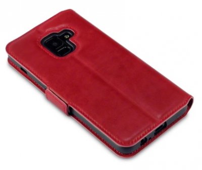 Mobilväska Samsung Galaxy A8 Röd Slim Äkta Läder