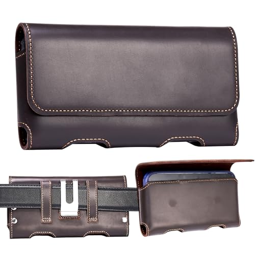 Gcepls läder mobiltelefon bältesväska för iPhone 16 15 14 13 12 11 Pro, XR, XS, Samsung Galaxy S23 S22 S21 S20 M01 Core, äkta läder mobilväska med bältesklämma, läderväska (mörkbrun, M)
