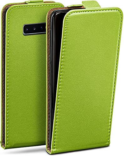moex Flip Case för Samsung Galaxy S10, vikbart fodral, 360 graders runt komplett skydd, vikbart fodral av veganskt läder, mobilväska med vertikal klaff, magnetisk – grön