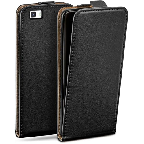 moex Flip Case för Huawei P8 Lite 2015 fodral vikbart, 360 grader runt komplett skydd, hopfällbart skal av veganskt läder, mobilväska med vertikal klaff, magnetisk – svart