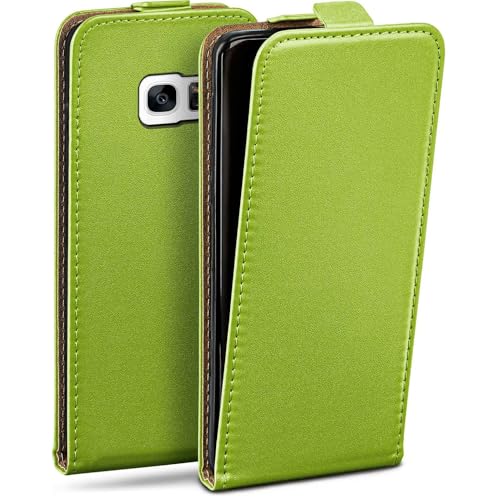 moex Flipfodral för Samsung Galaxy S7 vikbart fodral, 360 graders komplett skydd, vikbart fodral av veganskt läder, mobilväska med vertikal klaff, magnetisk – grön