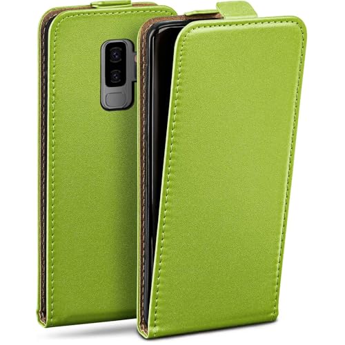 moex Flip Case för Samsung Galaxy S9 Plus vikbart fodral, 360 grader runt komplett skydd, hopfällbart skal av veganskt läder, mobilväska med vertikal klaff, magnetisk – grön