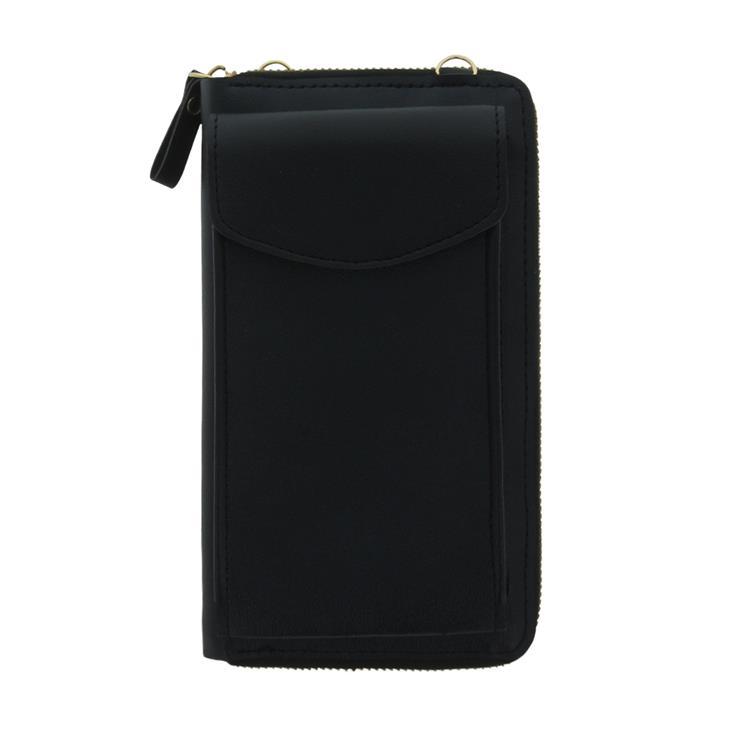 Kememo Mobiltelefon axelväska dam, PU-läder mobilväska för upphängning med plånbok kortplatser, crossbody axelväskor plånbok liten väska, svart