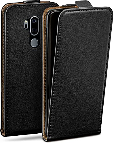 moex Flip Case för LG G7 ThinQ/G7 Fit fodral vikbart, 360 grader runt komplett skydd, vikbart fodral av veganskt läder, mobilväska med vertikal klaff, magnetisk – svart