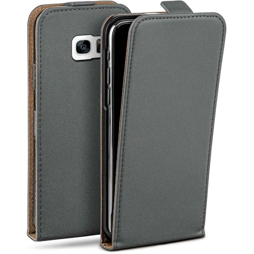 moex Flip Case för Samsung Galaxy S7 Edge – vikbart skal, 360 graders vikbart skal av veganskt läder, mobilväska med vertikal klaff, magnetisk – grå