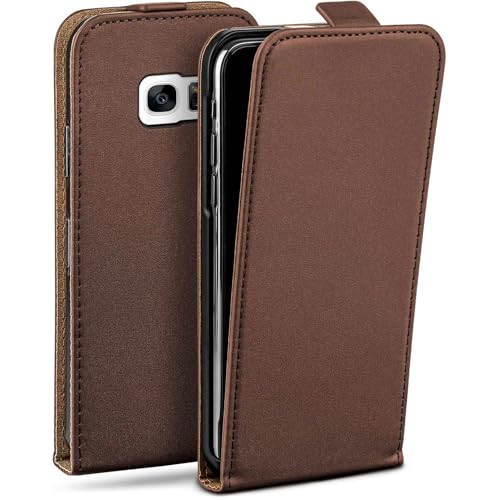 moex Flipfodral för Samsung Galaxy S7 vikbart fodral, 360 graders komplett skydd, hopfällbart skal av veganskt läder, mobilväska med vertikal klaff, magnetisk – mörkbrun