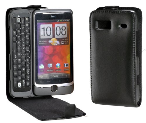 MaryCom Premium kvalitet läder mobilväska svart för HTC Desire Z smartphone gratis skärmskydd/LTS DZ