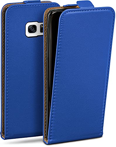 moex Flipfodral för Samsung Galaxy S7, vikbart fodral, 360 graders komplett skydd, hopfällbart skal av veganskt läder, mobilväska med vertikal klaff, magnetisk – mörkblå