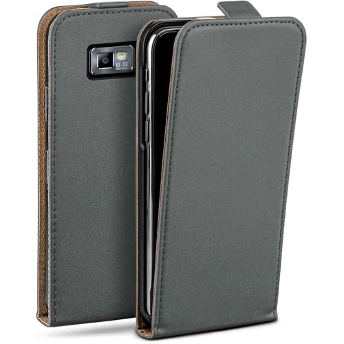 moex Flip Case för Samsung Galaxy S2/S2 Plus vikbart fodral, 360 grader runt komplett skydd, vikbart fodral av veganskt läder, mobilväska med vertikal klaff, magnetisk – grå