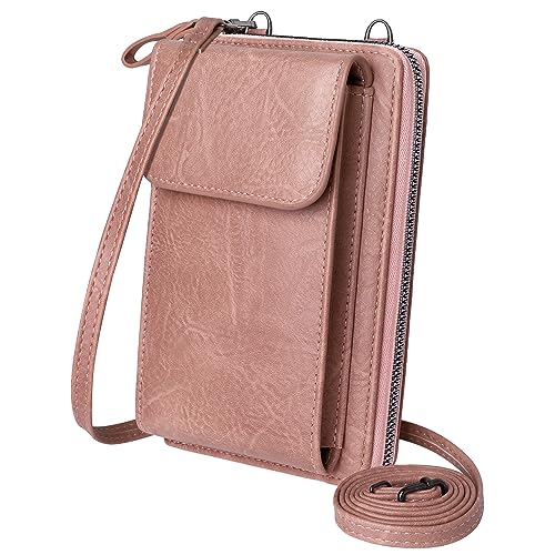 MUIIKOLA Mobiltelefonväska för upphängning, RFID-blockering stor kapacitet mobiltelefon axelväska dam läder, mobilväska med plånbok för upphängning, axelväska dam bred rem avtagbar axelrem,