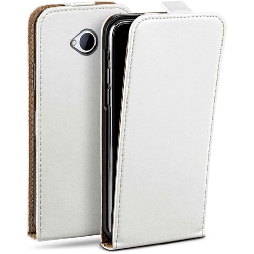 moex Flip Case för HTC One M7 fodral vikbart, 360 grader runt komplett skydd, hopfällbart skal av veganskt läder, mobilväska med vertikal klaff, magnetisk – vit