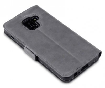 Mobilväska Samsung Galaxy A8 Grå Slim Äkta Läder