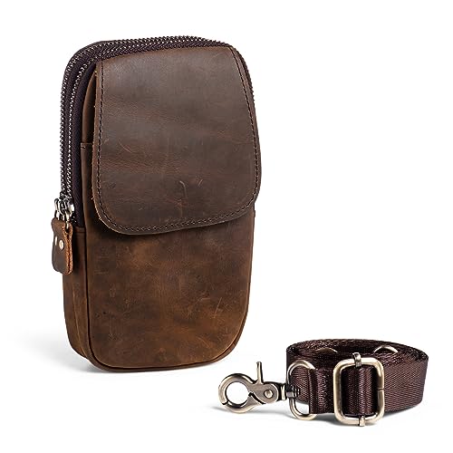 Hengwin bältesväska med bältesögla och bältesklämma, äkta läder mobilväska för resor, utomhusaktiviteter, fritidskläder och varje tillfälle väska, mobilhållare axelväskor (kaffe)