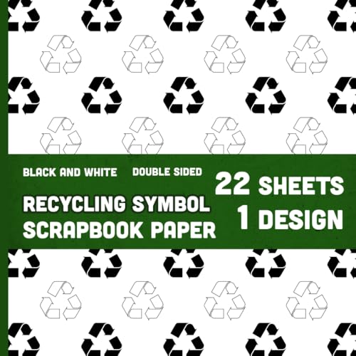 Recycling Symbol Scrapbook Paper: Mobius Loop Arrows Pattern for Crafts, Conserve Natural Resources or Prevent Pollution DYI Projects - 1 Design - 22 Sheets - 8.5x8.5 in