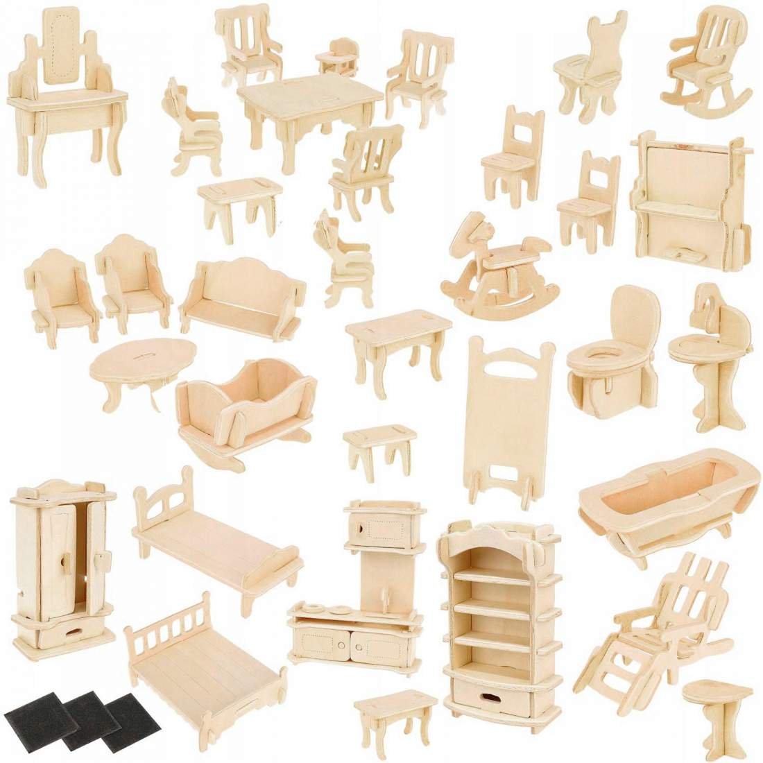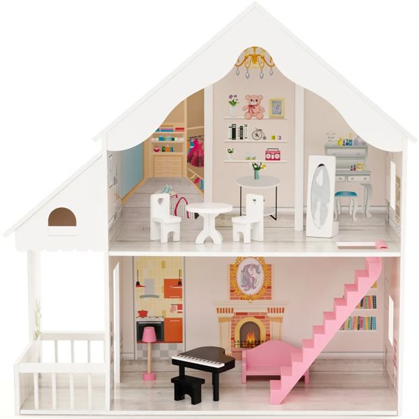 Dockhus i Trä med 10 Möbler och 6 Rum