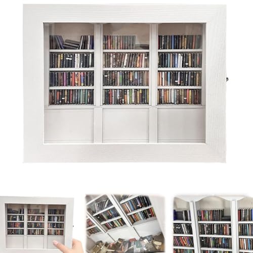 Pgtc Bokhylla för åNgest,Miniatyr Dockhus Bokhylla MöBler, TräDockhus Bokhylla FöR BokäLskare, Kreativ Anti-åNgest-Bokhylla Ornament som Stressreducerande GåVa (Vit)