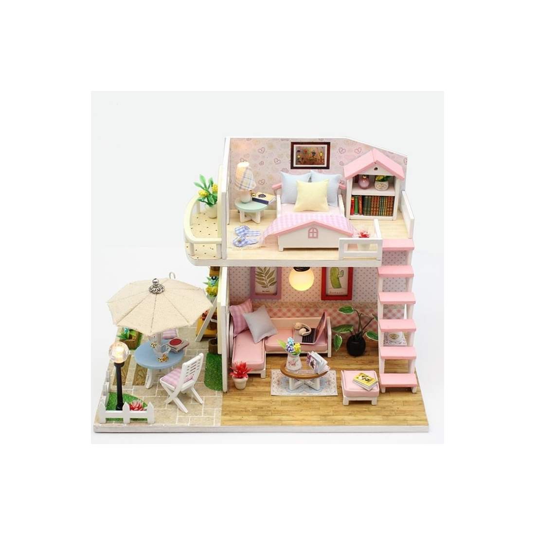 CUTEROOM Gör-det-själv dockhus med möbler och musik – dockhus set av trä för barn, vuxna, pojkar och flickor (Pink Sweetheart)