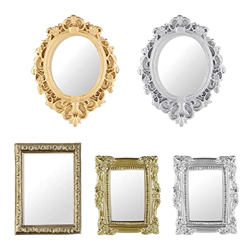 Cobee Dollhouse miniatyrspegelset, 5 delar mini dockhusspegel 1:12 miniatyrspegel dockhus möbler tillbehör mini väggspegel för dockhus studierum sovrum