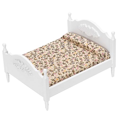 Dockhussäng, 1:12 skala vintage dubbel docksäng, 18 x 15 cm dockhus möbler i trä, gör-det-själv-vänliga vita färgminiatyrer för scenmöbler