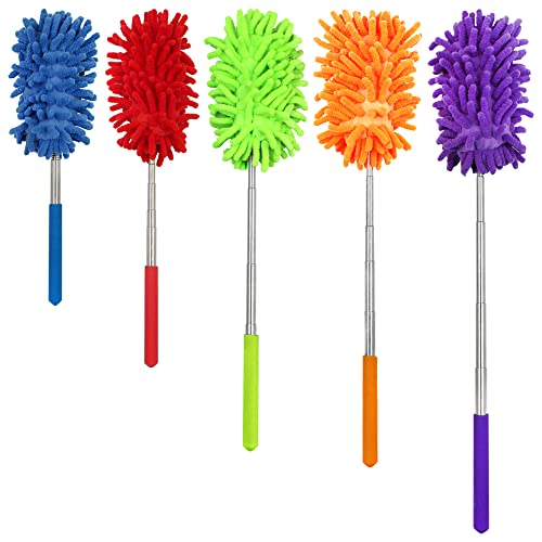 5 st utdragbara mikrofiberdammtrasor för rengöring, Aifuda avtagbar tvättbar handhållen dammtrasa för rengöring av kontor, möbler, bilar, luftkonditionering och takfläktar