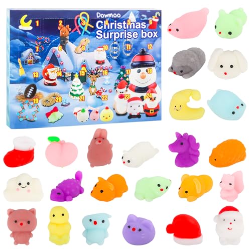 Joyin 2022 Mochi Squishy adventskalender, jul, 24 dagars nedräkningsadventskalender inklusive 21 söta mochi-djur/squishies och 3 stora långsamt stigande squishy-leksaker