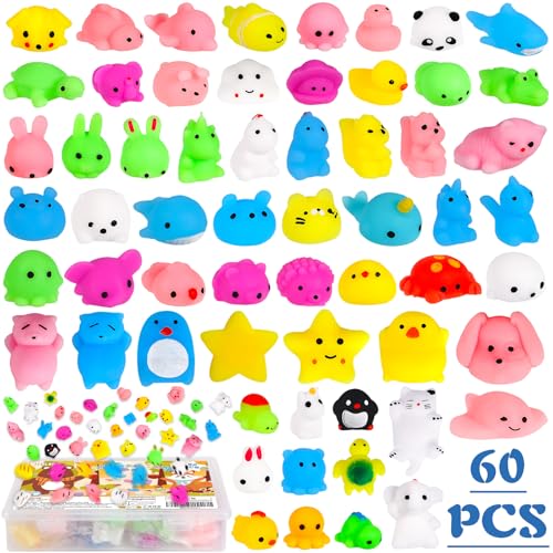 ZZXLOPEZ 60 st Mochi Squishy Toy, Festgåvor Leksaker för Barn, Stressavlastande Mini Squishies med Kawaii djurdesign - söta djurleksaker att klämma för barn, flicka, pojke, påskklassrum, belöningar